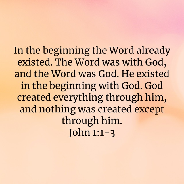 Posted byBarbara DavisNovember 15, 2022Posted inUncategorized bible.com/bible/116/jhn.1.1-3.NLT Share this: Click to share on X (Opens in new window) X Click to share on Facebook (Opens in new window) Facebook Like Loading... Related Published by Barbara Davis I believe God. I believe Jesus Christ is the Son of God. I believe in Holy Spirit empowerment. I believe in the resurrection and the life. View more posts