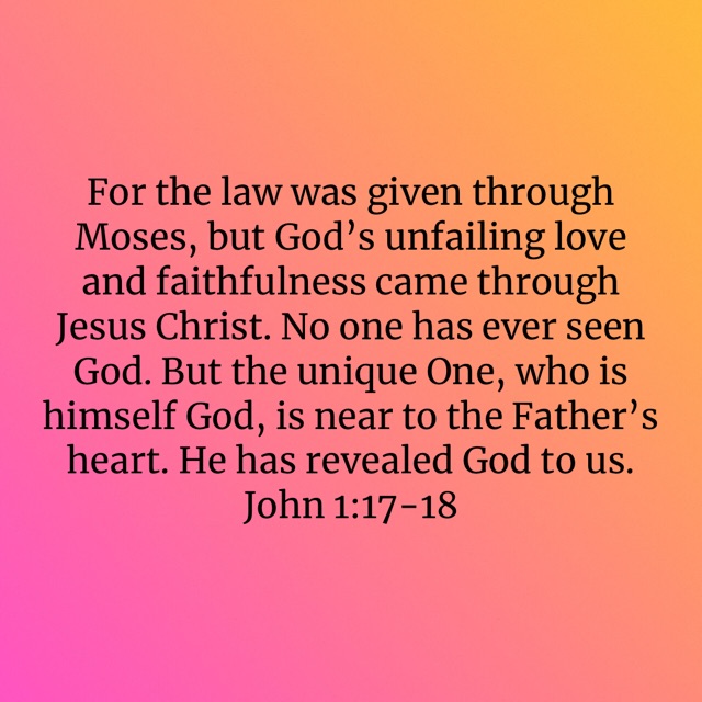 Posted byBarbara DavisNovember 23, 2022Posted inUncategorizedTags:Revelation bible.com/bible/116/jhn.1.17-18.NLT God revealed. Share this: Click to share on X (Opens in new window) X Click to share on Facebook (Opens in new window) Facebook Like Loading... Related Published by Barbara Davis I believe God. I believe Jesus Christ is the Son of God. I believe in Holy Spirit empowerment. I believe in the resurrection and the life. View more posts