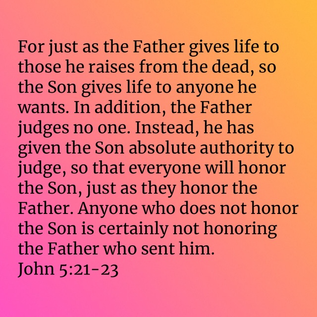 Believe Jesus Posted byBarbara DavisMay 9, 2023Posted inUncategorized bible.com/bible/116/jhn.5.21-23.NLT Share this: Click to share on X (Opens in new window) X Click to share on Facebook (Opens in new window) Facebook Like Loading... Related Published by Barbara Davis I believe God. I believe Jesus Christ is the Son of God. I believe in Holy Spirit empowerment. I believe in the resurrection and the life. View more posts