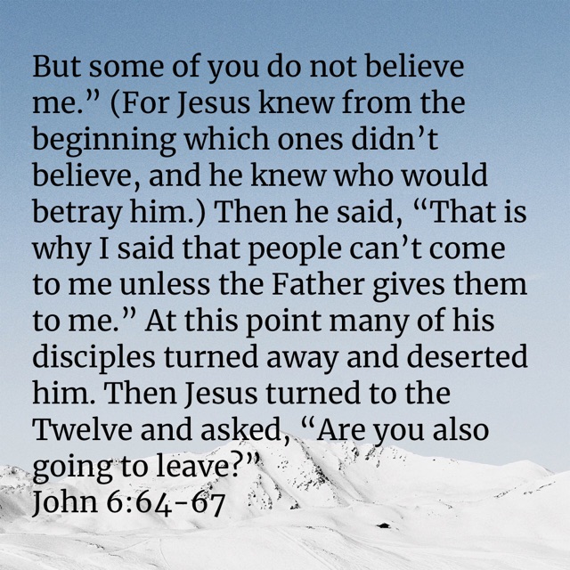 Do You Believe in Jesus? Posted byBarbara DavisJuly 27, 2023Posted inUncategorized bible.com/bible/116/jhn.6.64-67.NLT Share this: Click to share on X (Opens in new window) X Click to share on Facebook (Opens in new window) Facebook Like Loading... Related Published by Barbara Davis I believe God. I believe Jesus Christ is the Son of God. I believe in Holy Spirit empowerment. I believe in the resurrection and the life. View more posts