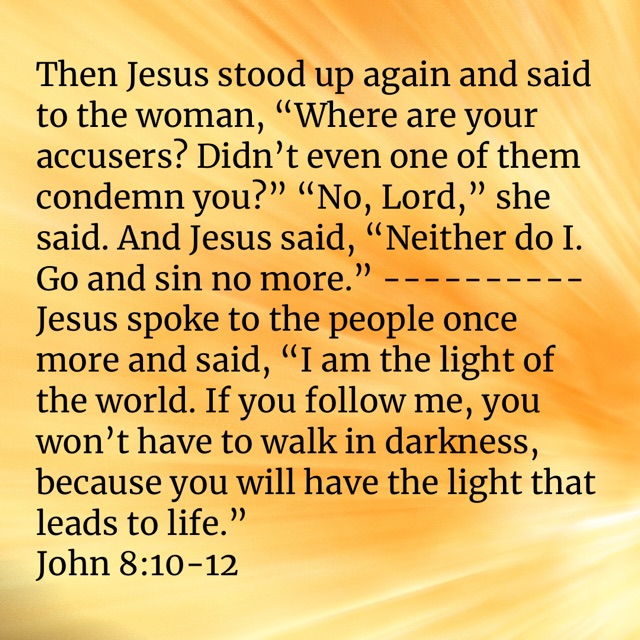 Follow The Light Posted byBarbara DavisSeptember 1, 2023Posted inUncategorized bible.com/bible/116/jhn.8.10-12.NLT Share this: Click to share on X (Opens in new window) X Click to share on Facebook (Opens in new window) Facebook Like Loading... Related Published by Barbara Davis I believe God. I believe Jesus Christ is the Son of God. I believe in Holy Spirit empowerment. I believe in the resurrection and the life. View more posts